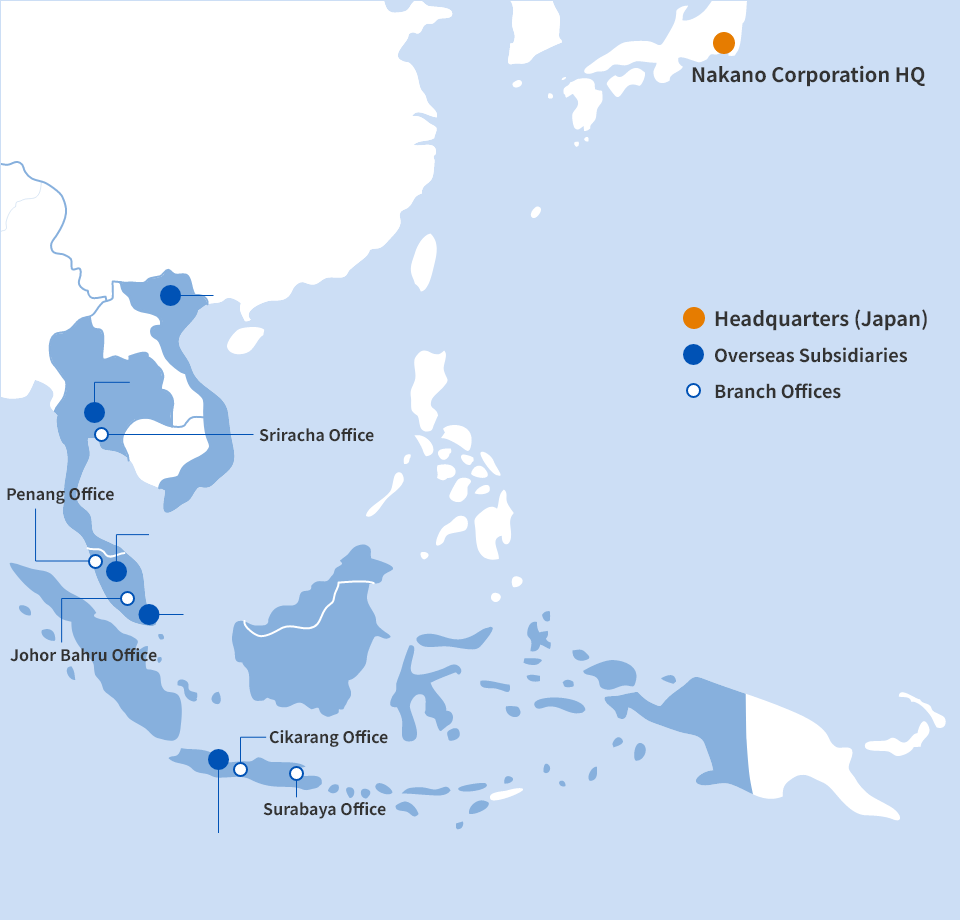 We have established a multifaceted network connecting our various business locations across Southeast Asia to our core operations in Japan, enabling us to respond swiftly to customer requests.